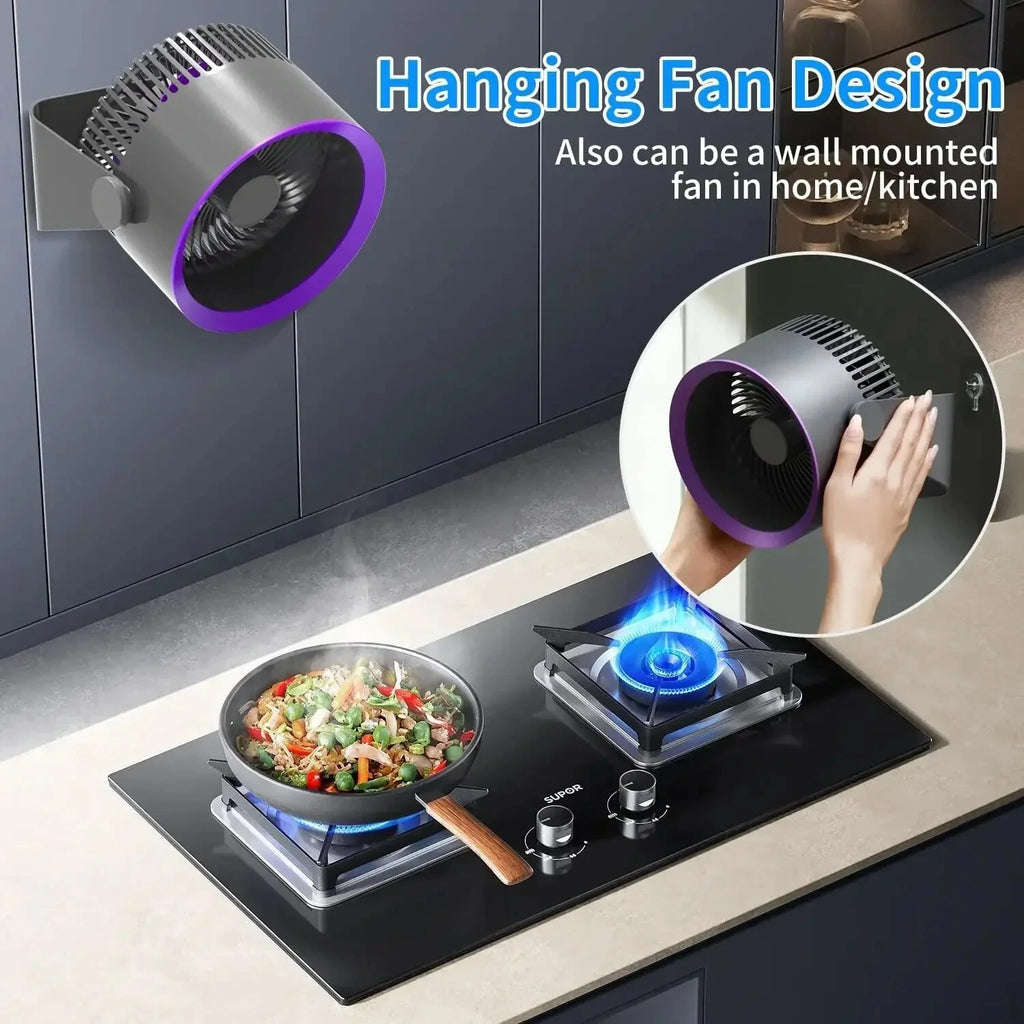 -- Gather Air Duct Design:The extend air duct is conducive to air accumulation, further air supply faster air circulation.The fan has 3 speeds & a 90 degree pivoting head.This quiet fan Is compact enough for on a table or wall mount and 4000mAh built-in battery powerful enough to help provide comfortable cooling.