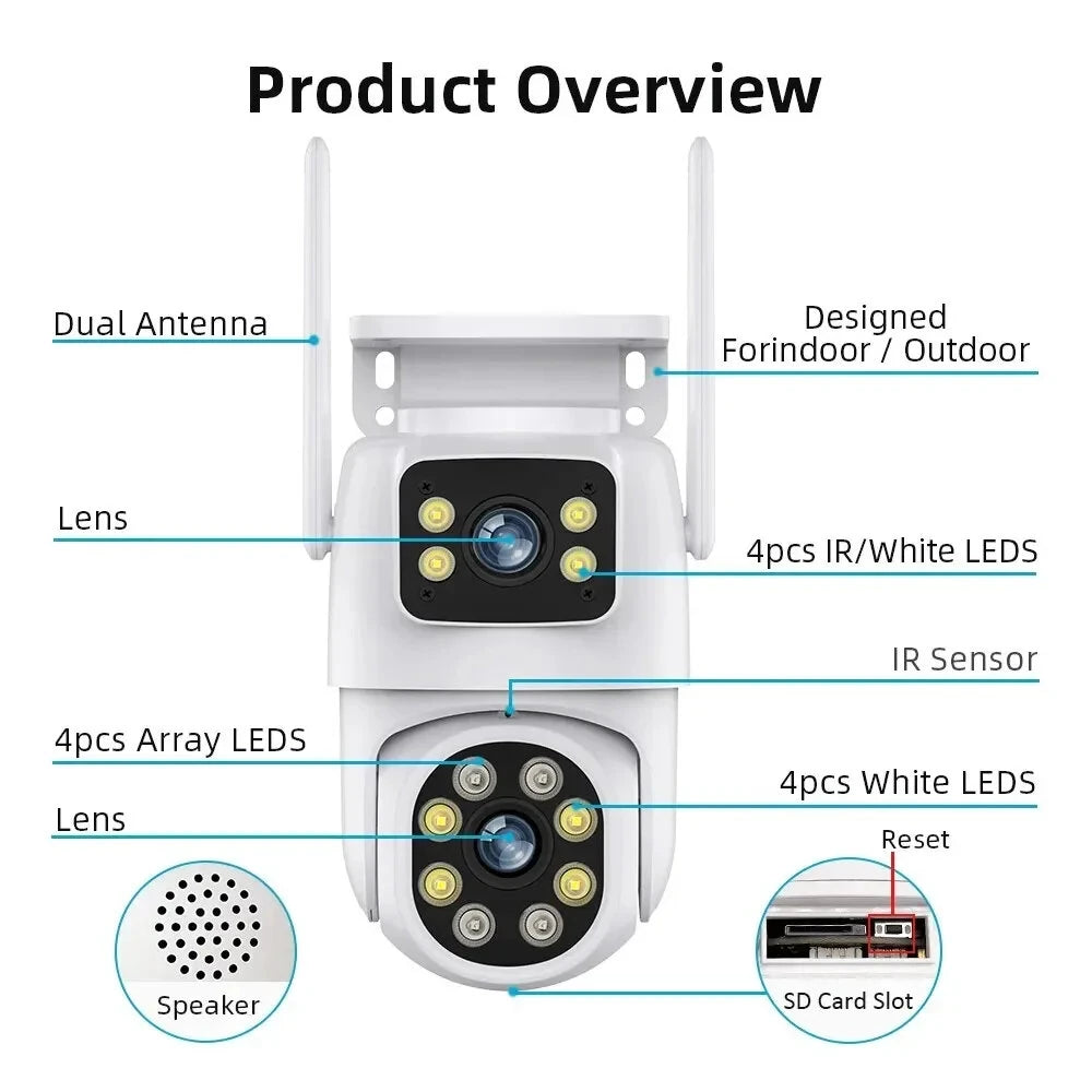 2. 360° Dual-Lens PTZ: Enjoy comprehensive area coverage with dual-lens PTZ that offers seamless 360° horizontal and 90° vertical control, ensuring no blind spots.
