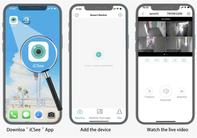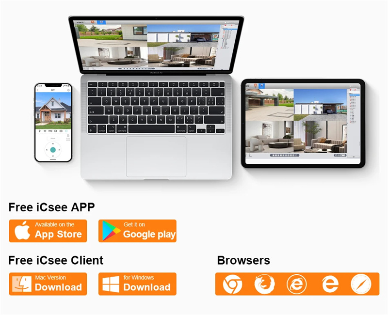 6. Multi-Device Monitoring: Share access across multiple devices and monitor via the free iSee app or browser.