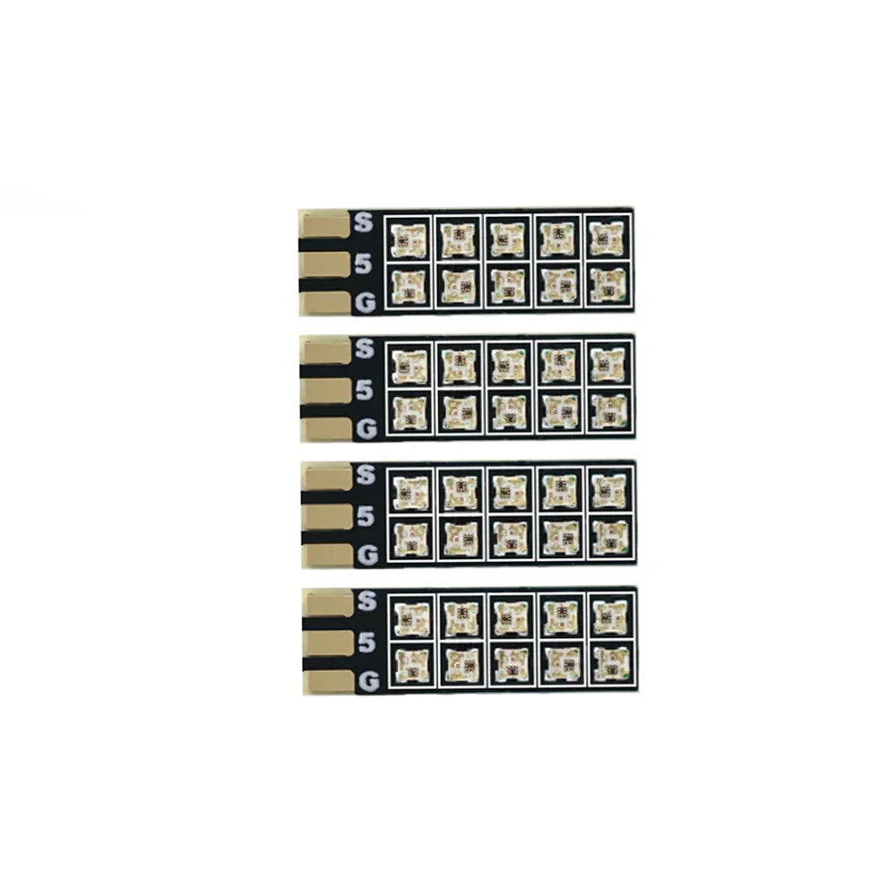 13mm Size: Lightweight design; Each strip carries 4 LEDs; Only 4 strips easily meet competition requirements (16 LEDs total); Features RGB LEDs programmable via flight controller/HGLRC W2812 LED controller for custom color effects.