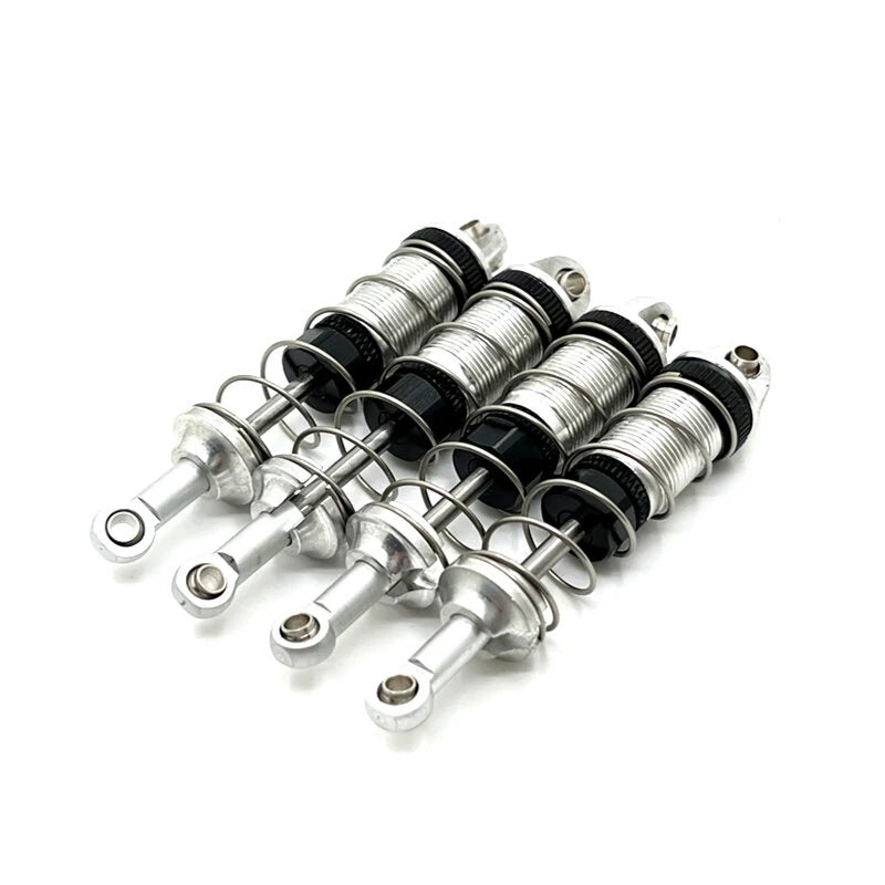 Weight: 49gNote: There is no oil inside the shock absorber, it can be used with or without oil.Including accessories: Front and rear shock absorbers * 4PCS (refillable, hole diameter 3.0mm, total length 75mm, movable length 12mm)