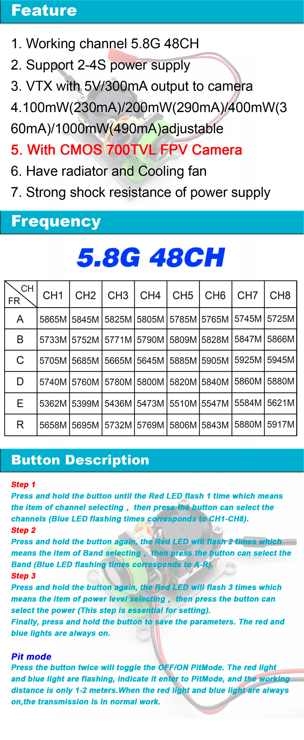 We designed this FPV combo for pilots and drivers who push limits. Whether you're flying a long-range drone or speeding across rough terrain with an RC car, stable video is everything. Our VTX delivers clean, adjustable power up to 1000mW, while the 700TVL camera captures crisp details even in variable light. Built light. Built tough. No signal drop, just pure focus.