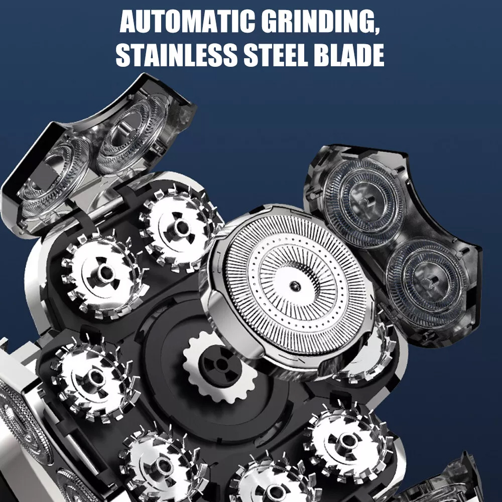 This electric shaver is equipped with 9 sharp floating heads and double ring blades that conform to the contours of your face, head, neck, and jawline. It ensures a gentle and efficient shave without pulling your hair, reducing skin irritation and improving comfort and closeness.