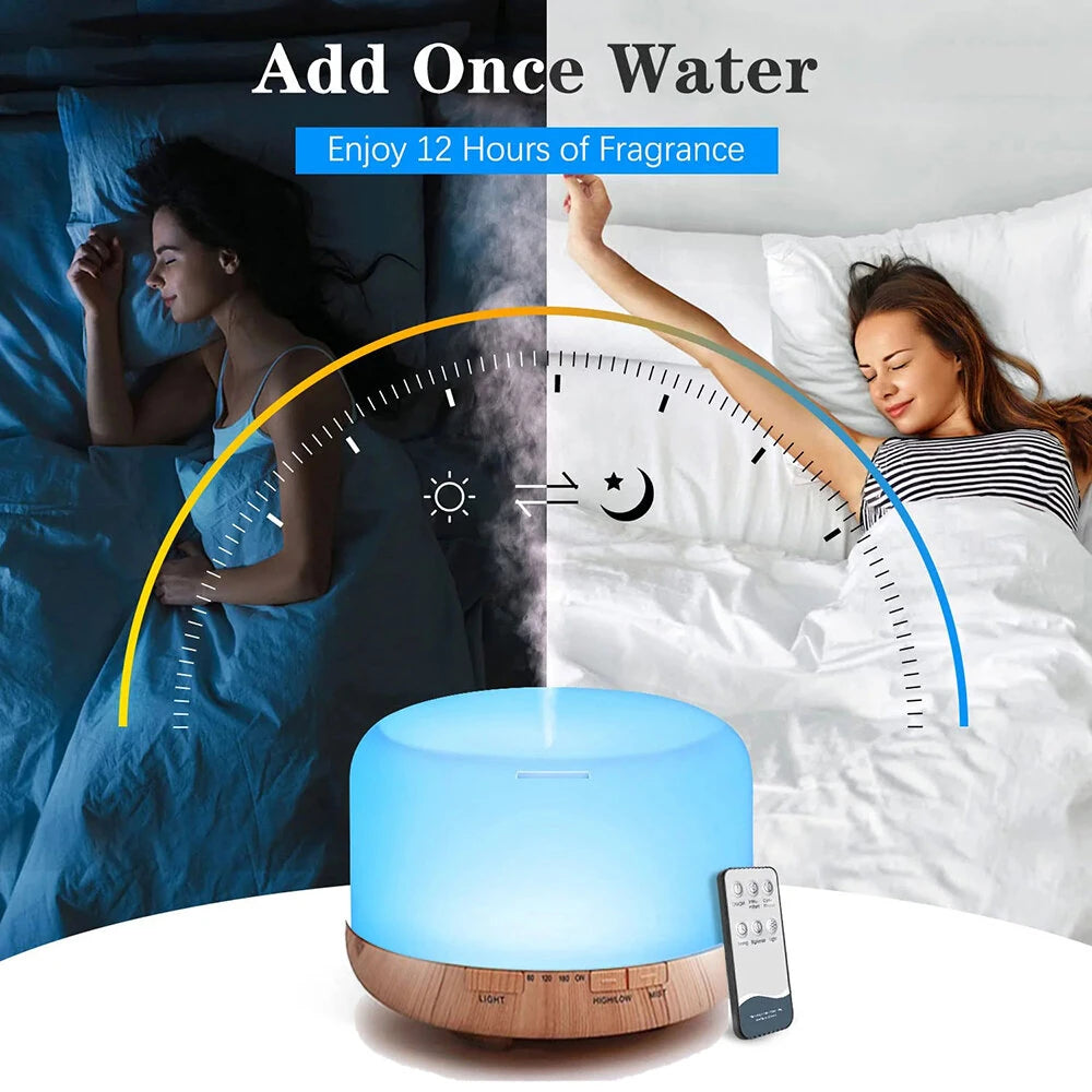 - Extended Operation Time: With a robust water tank capacity of 500ml, this aroma diffuser can operate continuously for up to 10 hours, making it ideal for all-day or overnight use.
