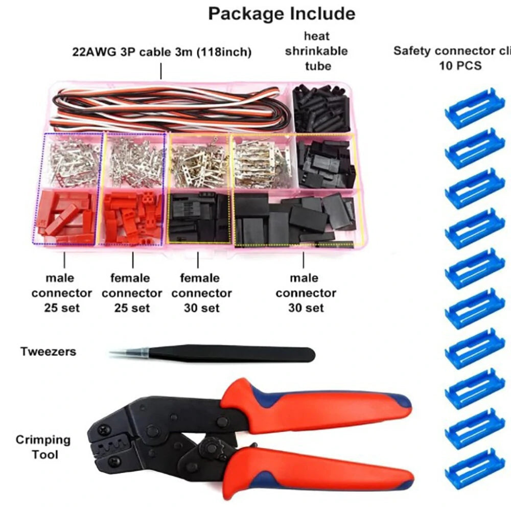 4. Each set includes a connector shell, a protective connector shell and a crimping pin connector. The servo connector is 2.54mm pin spacing, and the red connector is 2.5mm pin spacing.