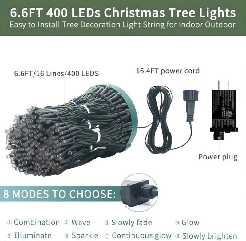 Featuring 400 bright LEDs across 16 strands, this Christmas tree light set provides exceptional brightness that outshines standard holiday lights. Each strand spans 2 meters, ensuring ample illumination to make your tree glow beautifully throughout the season.