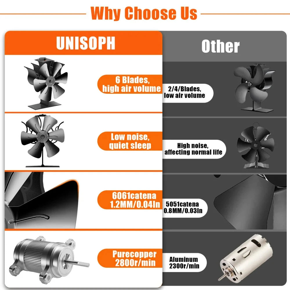 - Eco-Friendly and Self-Powered: The thermoelectric module acts as a mini generator to power the fan motor, eliminating the need for batteries or external power sources. This eco-friendly feature not only enhances the circulation of warm air but also reduces wood consumption, making your fireplace more efficient and sustainable.