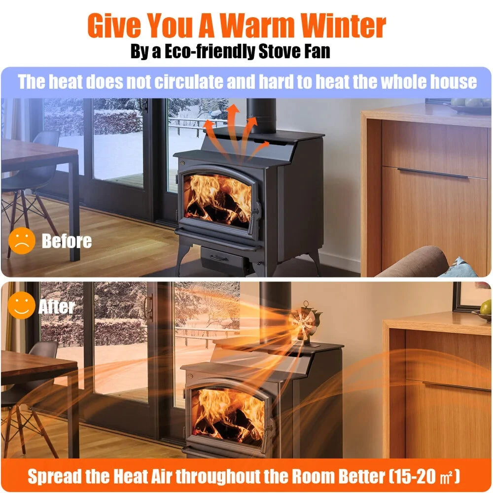 - Enhanced Warmth Distribution: Designed to cover an area of 15-20 square meters, this fan significantly improves the distribution of warm air in medium-sized rooms. By optimizing heat circulation, it creates a more comfortable living environment and helps you get the most out of your fireplace.
