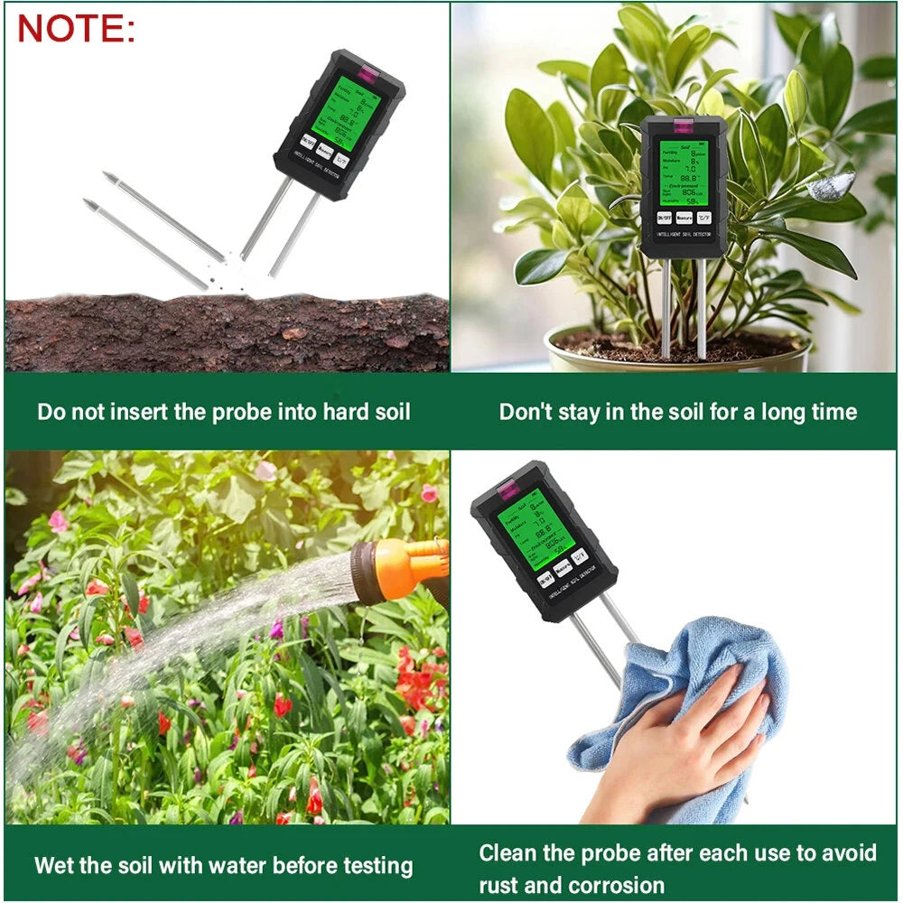 - Enhanced LCD Display: Equipped with a large green backlit LCD, it offers clear and intuitive readings, minimizing the risk of data error. Designed for convenience, it saves you the hassle of interpreting traditional soil test results.