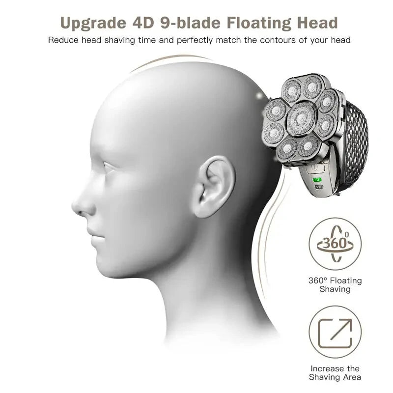 5. Bald Head Shaving: The shaver is specially designed for bald head shaving, providing a smooth, close shave without irritation, thanks to its upgraded 9 floating heads.