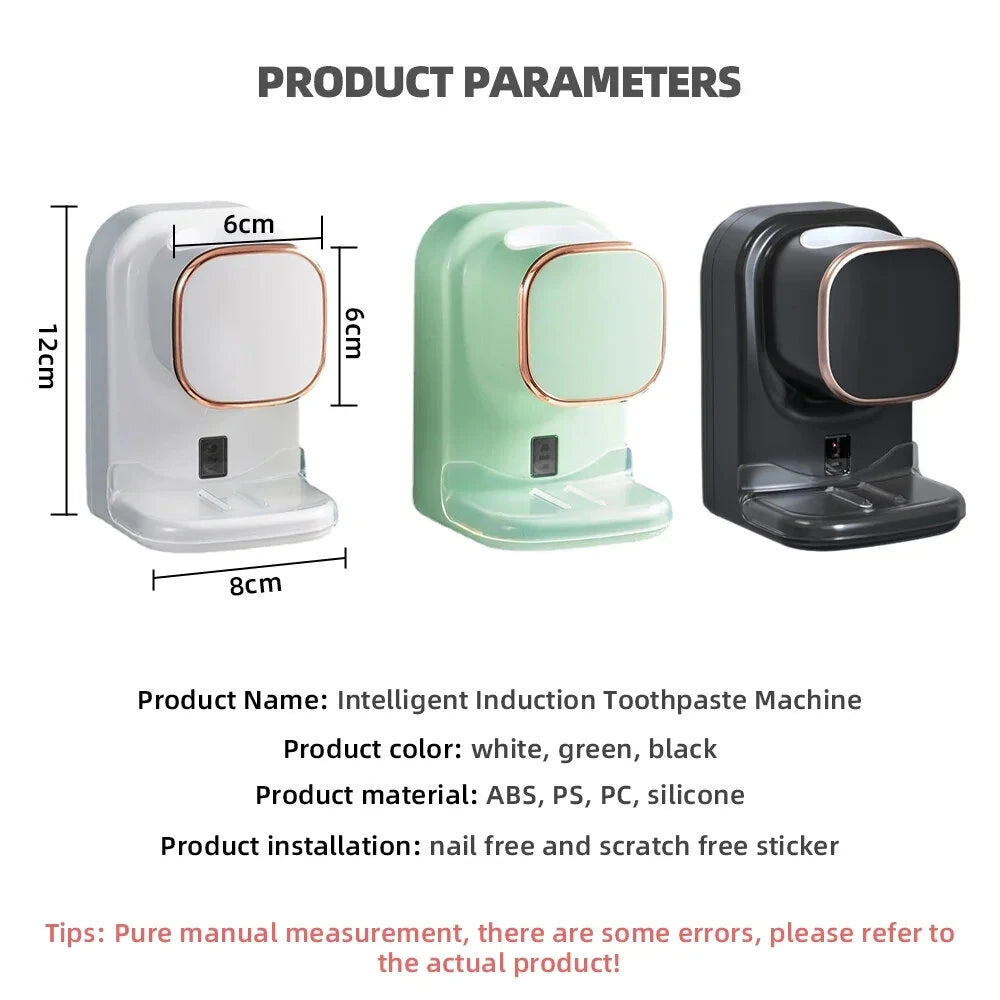 1.【No Mandatory Pushing】The automatic toothpaste dispenser does not need to be manually pressed hard. Just put your toothbrush into the automatic toothpaste dispenser, it will automatically dispense a ration of toothpaste according to the pattern you set. Make your life smarter.