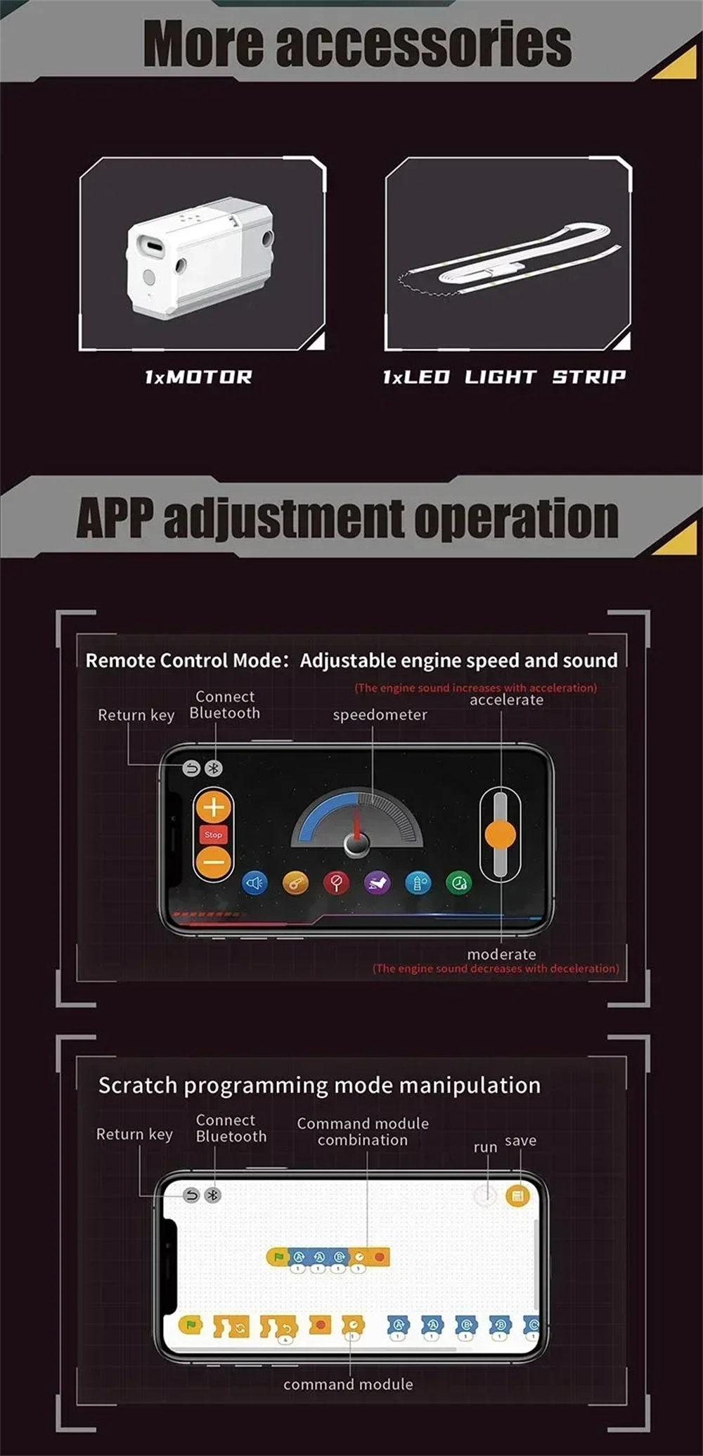 - Simulated power transmission system replicates real engine dynamics for a realistic building experience.
