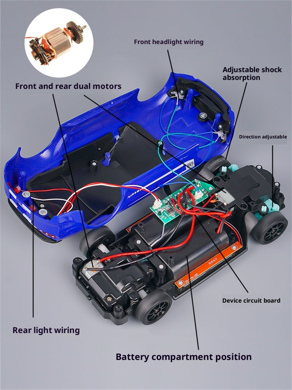 Featuring a four-wheel-drive system, this mini racing car offers superior speed and stability, ensuring you can tackle various terrains with ease.