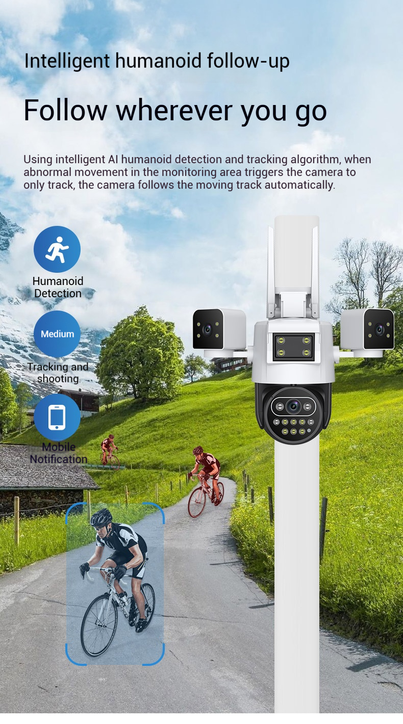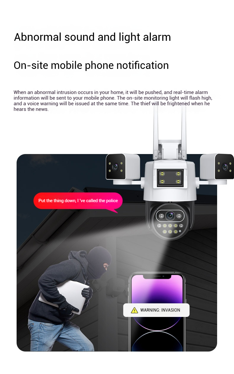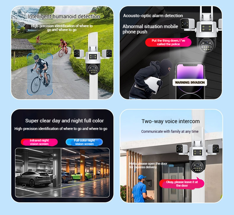 3. Enhanced Night Vision: Equipped with intelligent night vision technologies, the camera seamlessly switches between infrared, full-color, and smart modes depending on the lighting conditions. This ensures clear and detailed footage even in pitch-dark environments, maintaining high security at all hours.