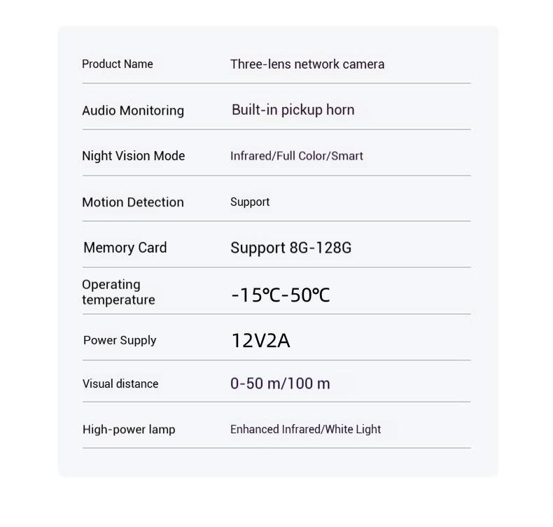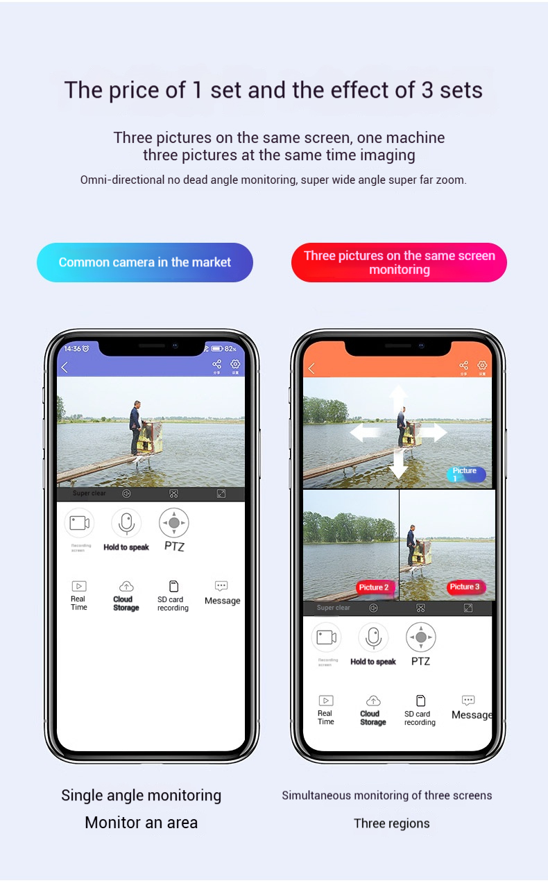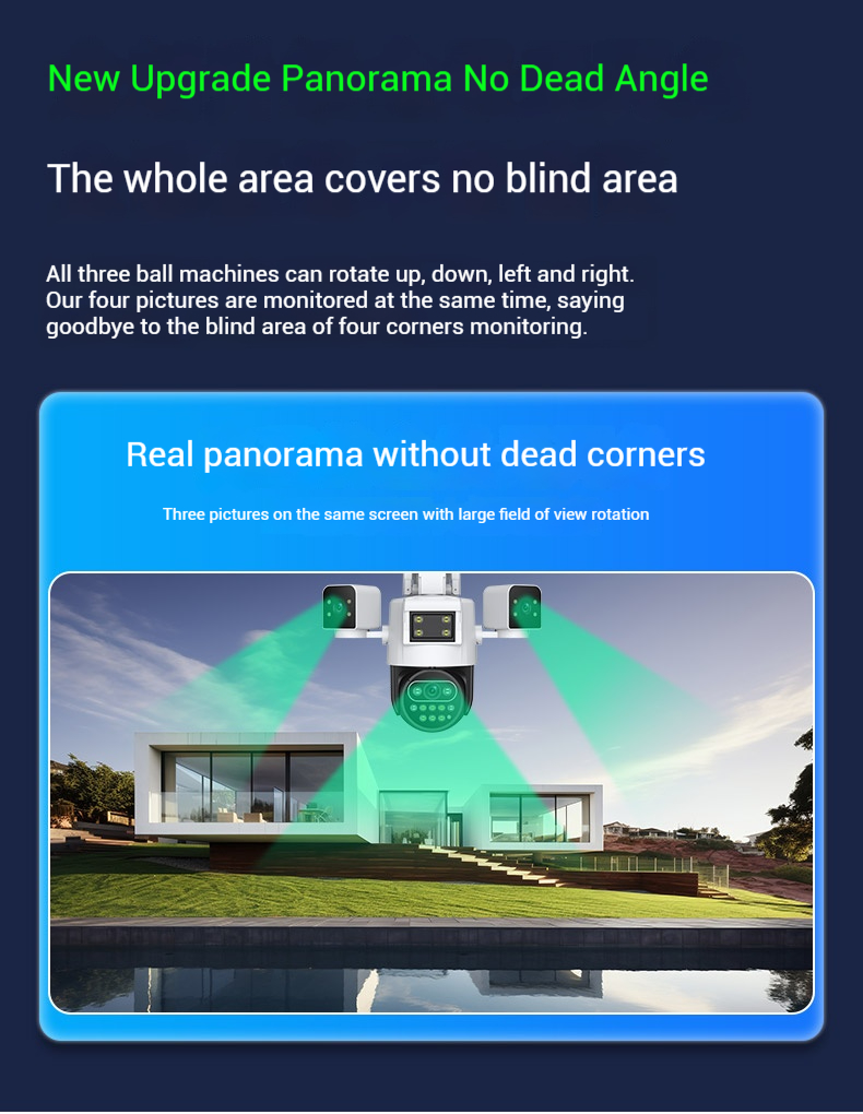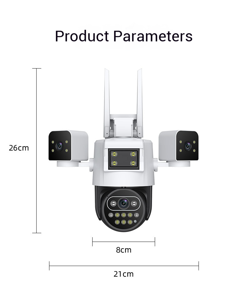 1. Three-Lens Triple View: This innovative camera features three lenses, providing a comprehensive overview of your property. Each lens can be independently controlled and adjusted for maximum coverage, ensuring no blind spots. The setup allows you to monitor different angles simultaneously, offering an all-encompassing surveillance solution.