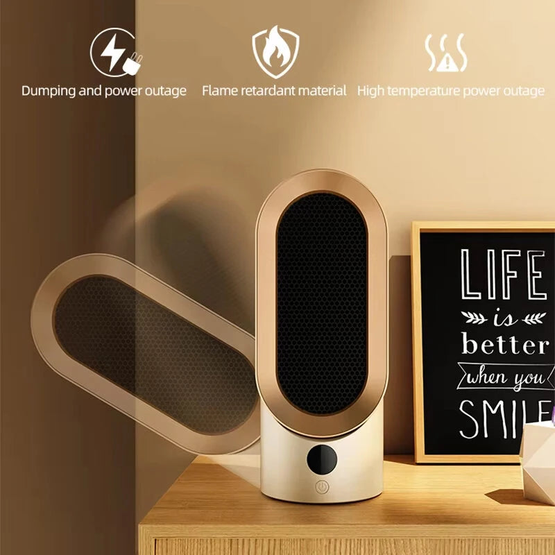 -- Efficient and Rapid Heating: With an impressive 800W power output, this space heater uses advanced PTC ceramic heating technology, ensuring rapid warm-up and high efficiency. Despite its compact size, it boasts powerful heating capabilities suitable for any room, whether it’s the home, bedroom, office, or underneath the desk.