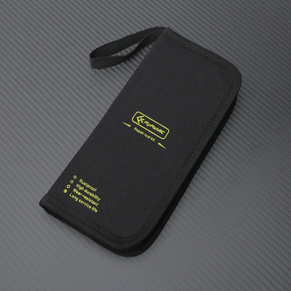 FlyFishRC has a practical 9-piece tool set that basically meets the needs of FPV pilots buddy for indoor and outdoor build and repair.The Case is made of 600D*300D oxford fabric material, heavy duty zipper, and well designed straps to hold your tools securely in place.The Anti-slip hanging belt design makes it difficult to drop when carrying.Specifications: