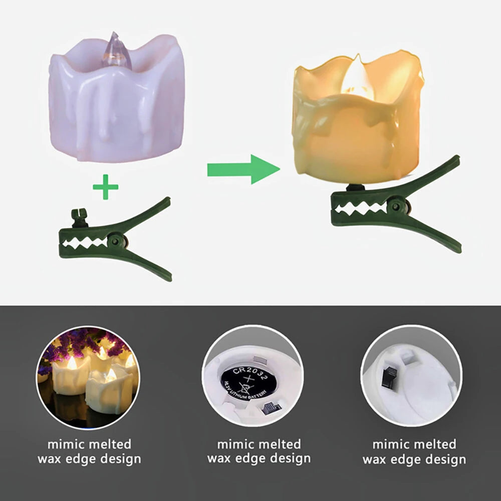 -- Made of high-quality plastic PP and LED lamp beads, it emits a warm white light that mimics the look of real candles. The stylish and compact design (4.0 x 3.6 cm) makes it perfect for elegant occasions such as weddings and formal events, while being flexible enough for casual home decoration.