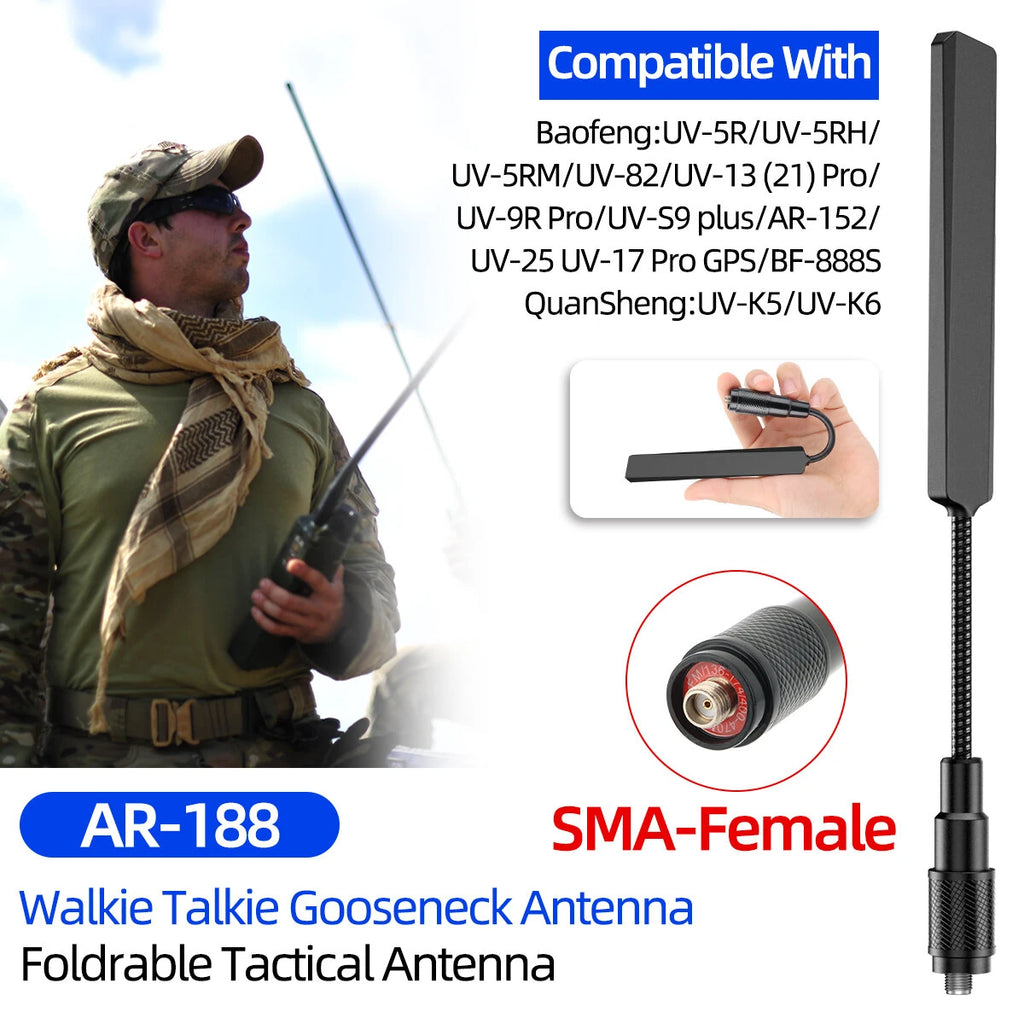 4. Flexible and Sturdy Design: The gooseneck structure of the AR-188 provides both flexibility and robustness, allowing easy adjustment of the antenna direction to maximize signal reception without compromising on durability.