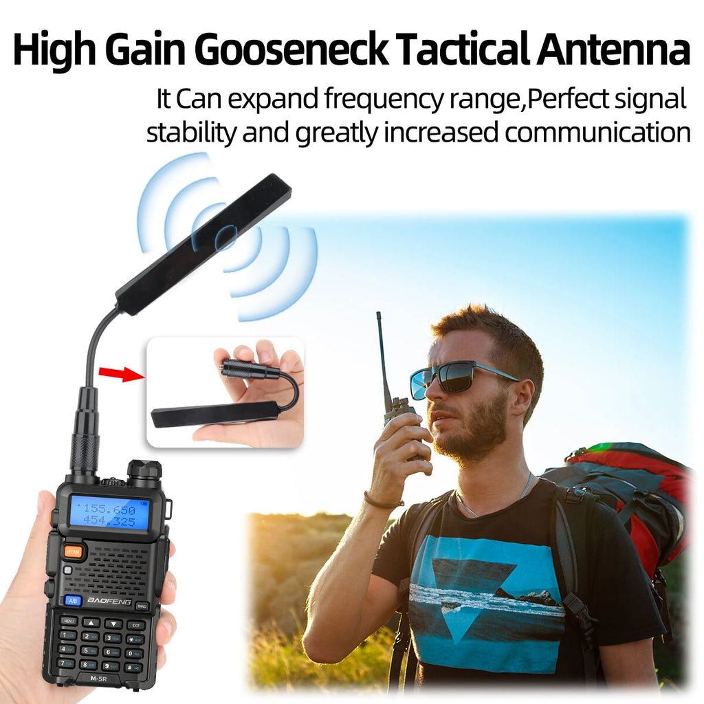 2. Enhanced Signal Reception: With a gain of 2.15/3.2 dBi, this gooseneck tactical antenna ensures optimal signal stability and improved communication range, essential for both urban and rural settings.