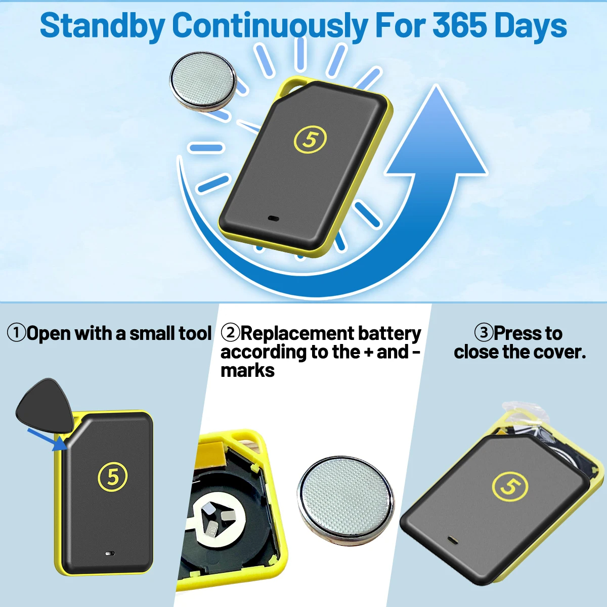 Battery Type: CR2032 (standby up to 365 days)