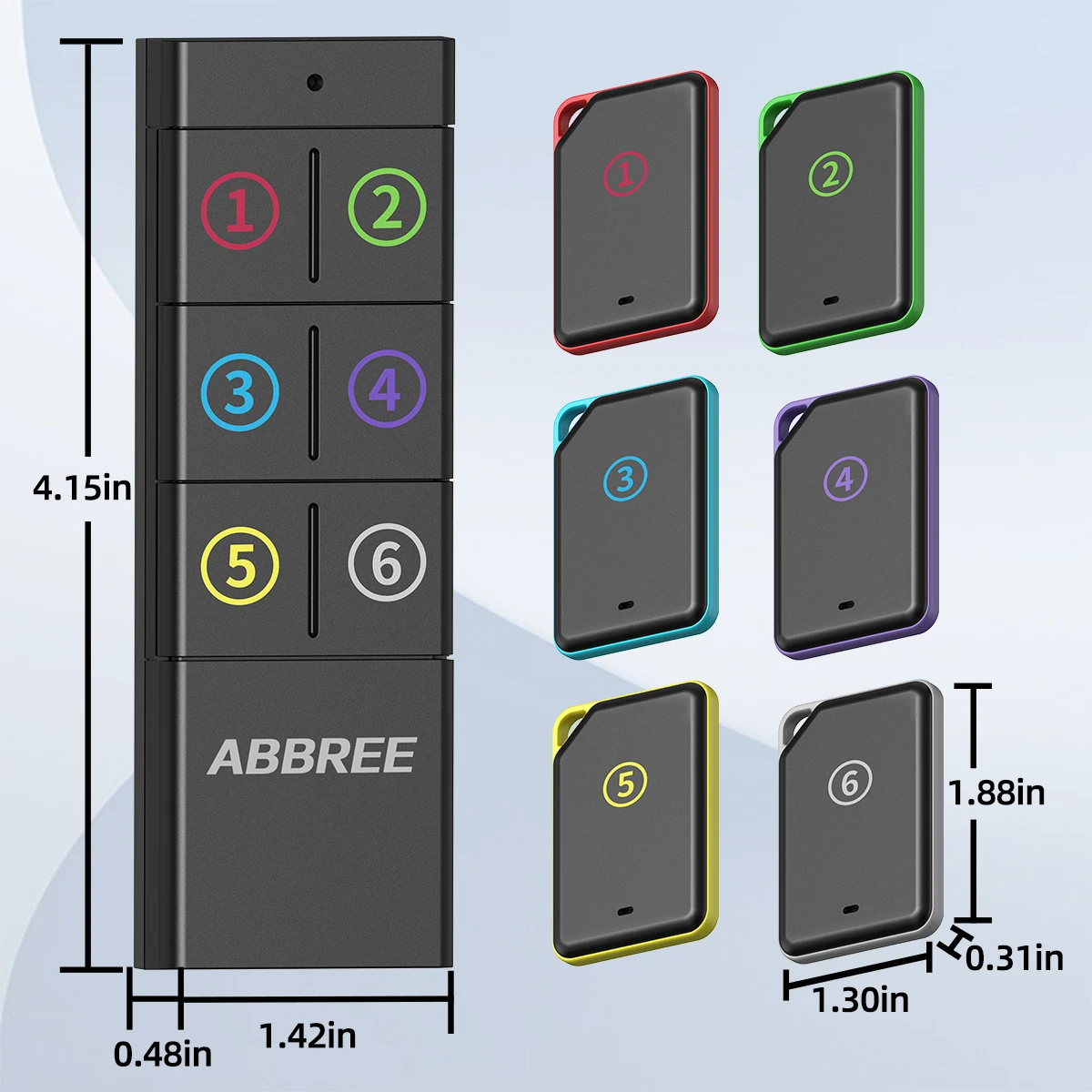 2. 1 IN 6 Independent Tracking: 6 receivers correspond to dedicated buttons on the transmitter, allowing for precise control of individual targets during tracking. For example, when searching for keys alone, the wallet's prompt sound will not be triggered, avoiding interference caused by multiple devices responding simultaneously.