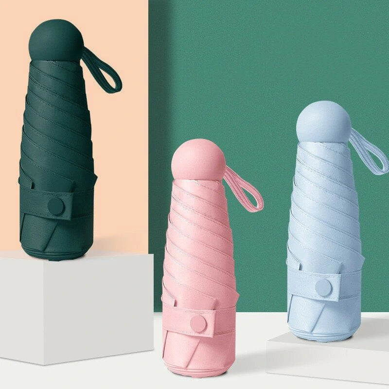 ULTRA COMPACT - This small light mini travel umbrella is easy to fold and store ; perfectly fits into your bags; Also, it has a wrist strap for hands-free carrying; Trenovo travel umbrella is a great choice to play a backup role and protect you at every momentWATERPROOF & WINDPROOF - Our small umbrellas protect you in the pouring rain with a high-quality canopy coated with water-repellent technology; Water does not penetrate, but rather forms beads and bounces off; The umbrella is designed to withstand 35 mph winds; Our umbrella is made to be light, which means it does not withstand strong windsBUILT TO LAST - Each of umbrellas is made of industrial strength fiberglass frame, which is more sturdy; The all-metal frame and 8 reinforced fiberglass ribs help you handle any harsh weather conditions at any timeMOVE FREE AND FEEL FREE- We know how inconvenient an umbrella can be and how this can affect every user; We care about your trip and want to be helpful whenever you need help to against the extreme weather; Therefore, we added an extra layer of insulation to this umbrella, which provides UPF 50+ protection that blocks 99% of UV rays, protecting you from both rain and sun weather.