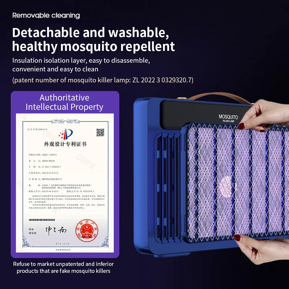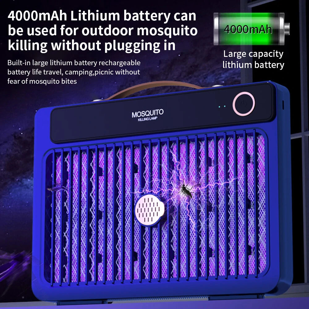 1. Effective Zapper: This zapper attracts all kinds of flying nuisances and eliminates them from your home. The light naturally attracts, and eliminates any other flying nuisances that bother you, and your family. 2. Safety: The zapper comes with a safety screen to prevent from small fingers getting inside the device. IT has an easy on and off switch at the top right.3. No Chemicals: This zapper contains no kinds of chemicals and simply functions designed to attract flying nuisances. Get rid of smelly, nasty sprays and use a high voltage zapper to keep your home free of nuisance. 4. Large Rechargeable Battery: 4000mAh large battery allows you to use it for outdoor mosquito killing.