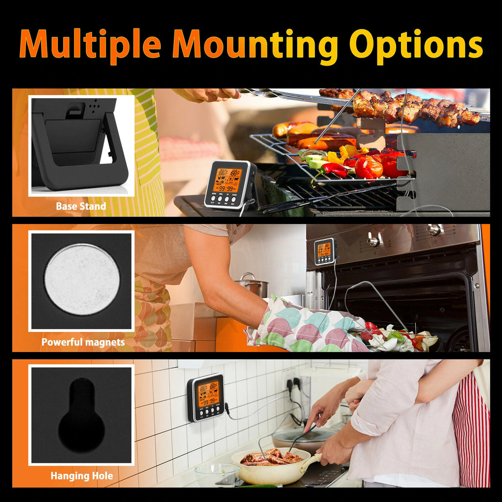 Digital Food Oven Meat Thermometer Outdoor Grill Cook Barbecue Kitchen Cooking BBQ Thermometer With Probe Timer Alert BacklightFunction:▶7 kinds of meat to choose, high temperature alarm▶ Preset temperatures to perfectly cook chicken, ham, pork, fish and beef▶ Easy conversion to Fahrenheit or Celsius▶99 minutes and 59 seconds up/down timer▶The back has 2 strong magnets that can be attached to the metal surface▶ Thermometer with orange backlight▶The back cover has brackets and hanging holesSpecification:1. Measuring range: 0-300°C2. Temperature resolution: 1°C3. Temperature error: ±1°C4. Timer: 99MIN 59SEC5.Single product size: 80*80*20MM6.Power supply mode: 2*AAA batteries(not included)Package include:1 x Thermometer1 x Long probe1 x User Manual