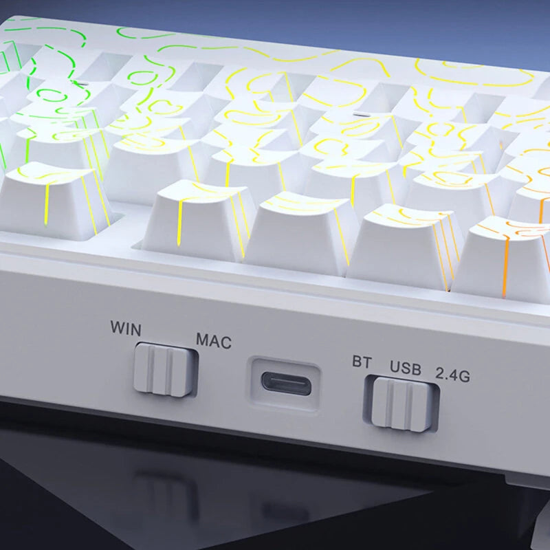 1. Tri-mode Connectivity: Easily switch between bluetooth, wireless 2.4GHz, or USB wired mode for seamless operation on Windows, for Mac, and Android systems.