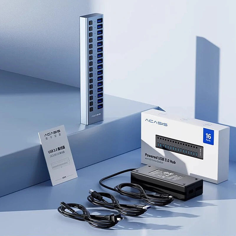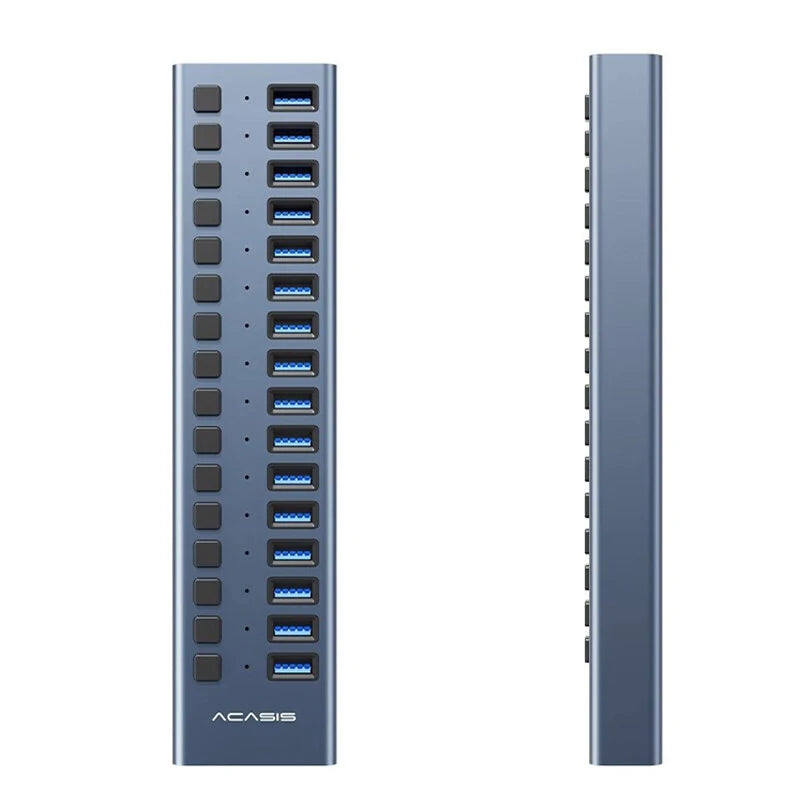【Multi-Port USB3.0 Hub】 - USB port expander instantly adds 16 USB 3.0 ports to the compatible devices. With the 12V/7.5A power adapter, the 16-port powered USB hub provides each port with stable, consistent current output and ensures stable data transfer.【Individual Switch】 - The individual switches allow you to take full control of all USB 3.0 ports - turning on/ off them separately at will without having to unplug the whole hub, and the indicators vivdly show the status of each port.