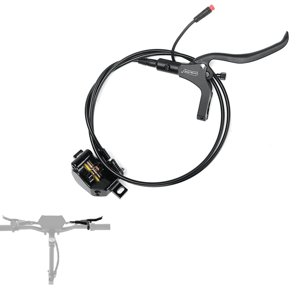 2. The left brake controls the rear wheels, and the right brake controls the front wheels.