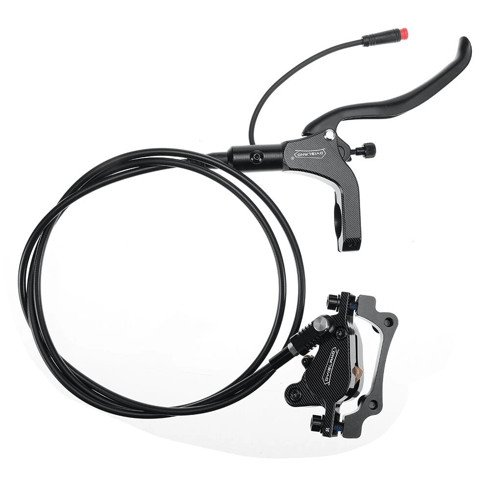 2. The left brake controls the rear wheels, and the right brake controls the front wheels.