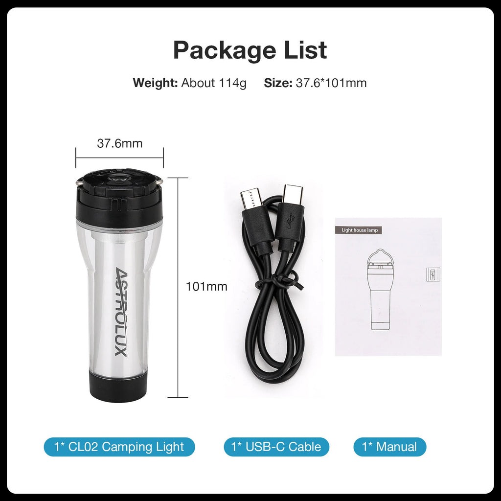 1* CL02 Camping Light1* USB-C Cable