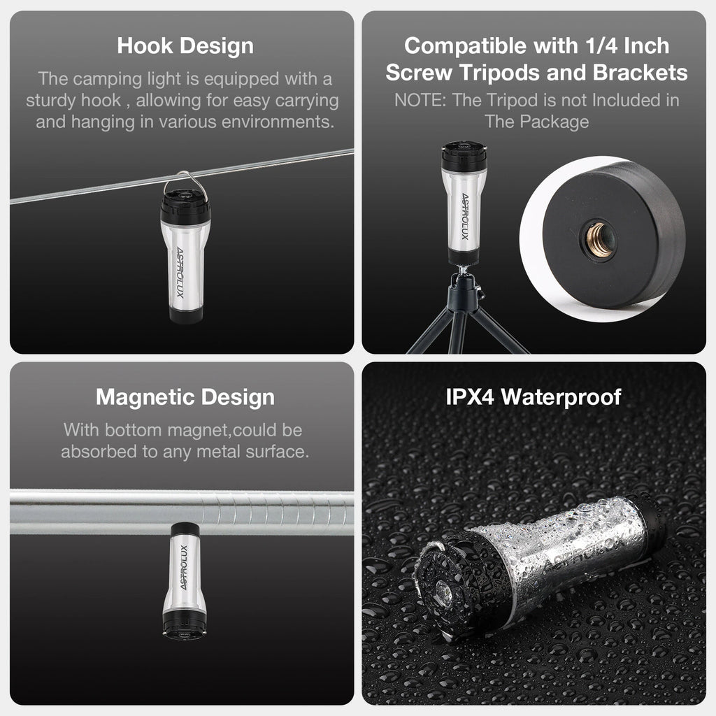 Featuring a hook on the top and a magnetic tail design, the Astrolux CL02 can be effortlessly hung on a backpack, tent, or other items. This enables you to access the flashlight quickly at any time and place, without having to worry about storage issues, so you can easily handle various scenarios.