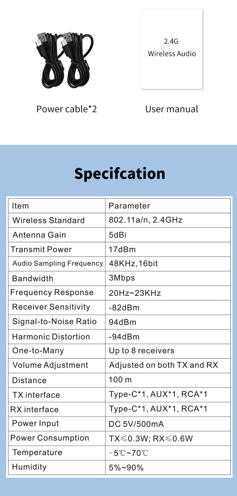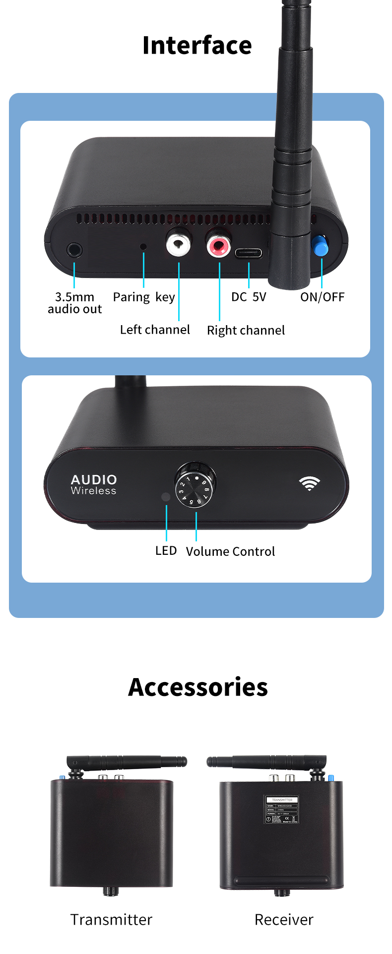 TX interface: Type-C*1,AUX*1,RCA*1