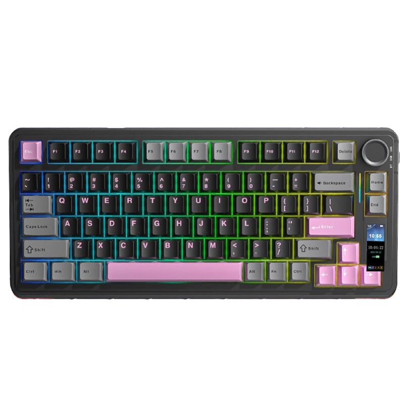 1. Triple-Mode Connectivity: Easily switch between wired, 2.4G wireless, and bluetooth modes for universal compatibility across Windows, Android, for Mac, and iOS devices.2. 1.14-Inch TFT Display Screen: Provides real-time function feedback, battery life status, and customizable settings for added convenience.