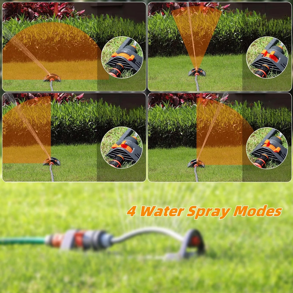 -- Water Spray Mode: Water Spray Mode: Oscillating sprinkler is professionally designed with four modes of water spray on both sides, left side, right side and middle, which can meet your different needs