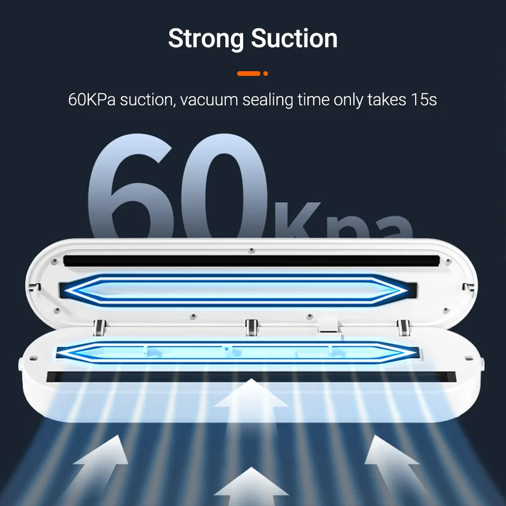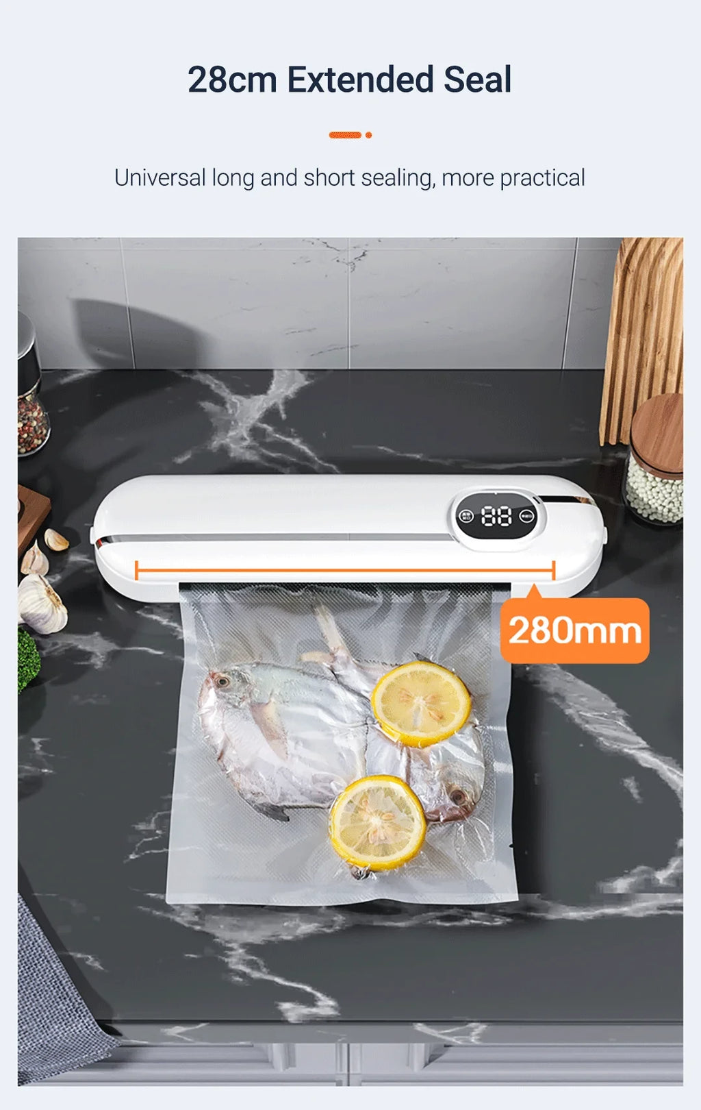 1.Compact vacuum sealing system reduces freezer burn, reducing food spoilage and waste.