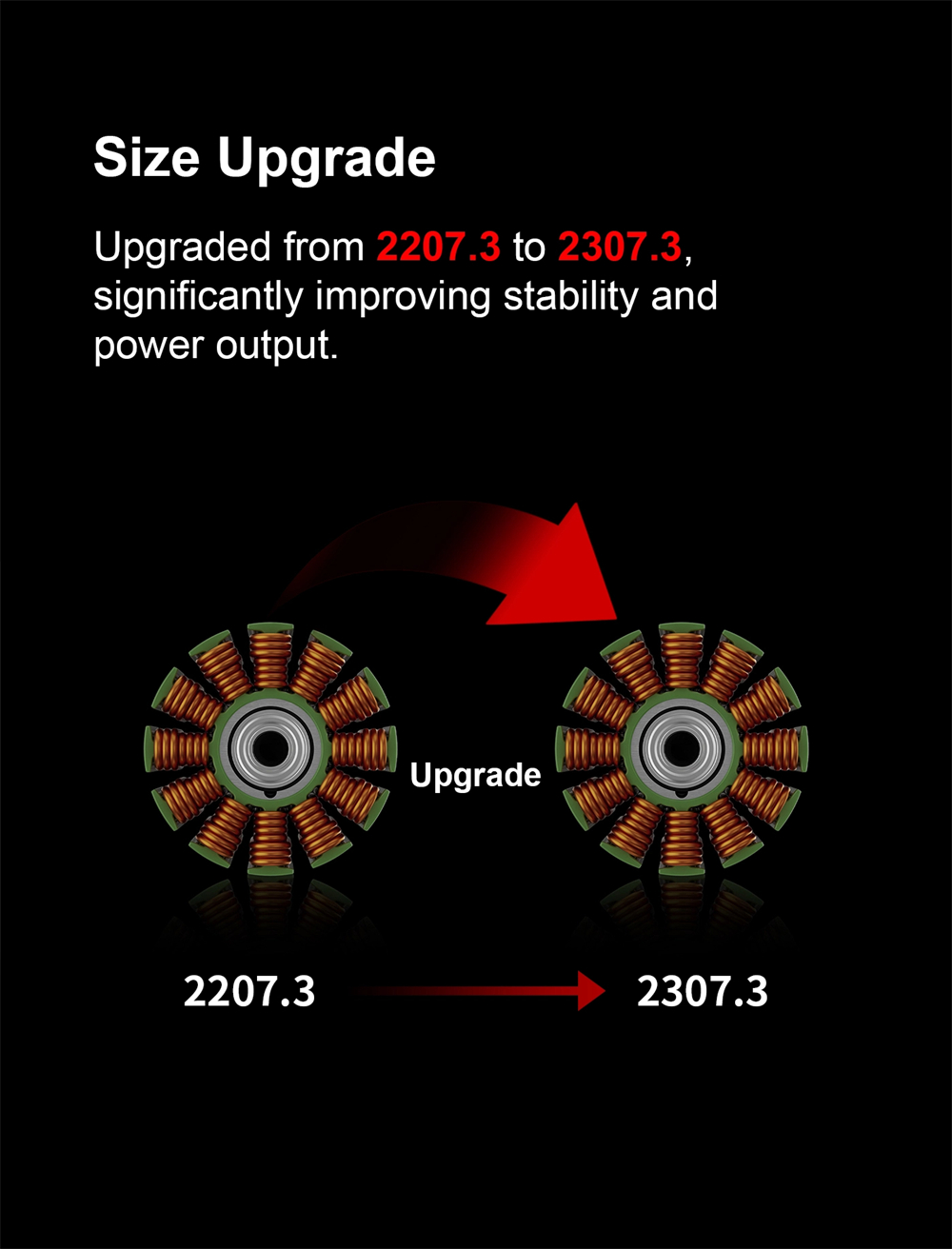- Increased thrust efficiency and say goodbye to crush motor bearings