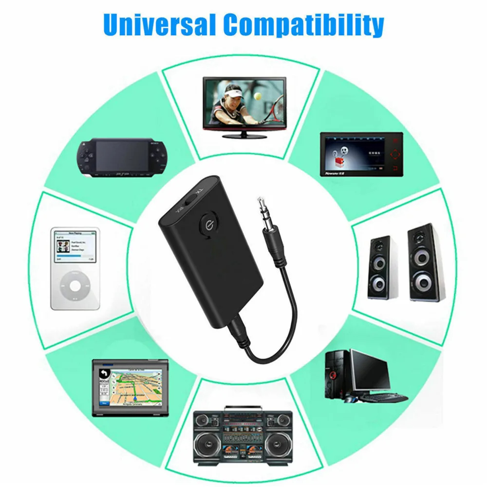 Universal Compatibility: It supports bluetooth functionality for all 3.5mm media devices, including Android and IOS phone systems, PADs, TVs, speakers, PCs, and more.