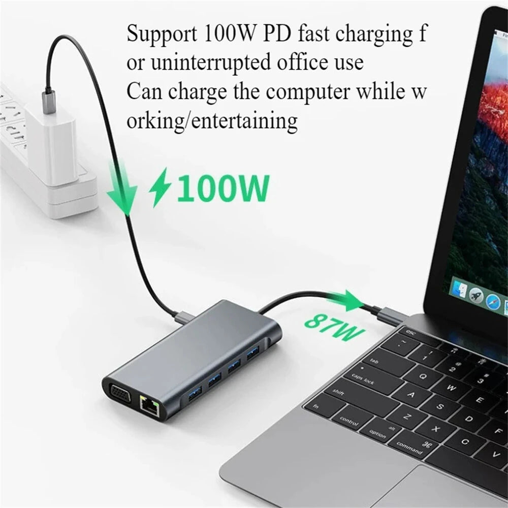 Packed with multiple ports—USB, HD, VGA, Ethernet, and SD/MicroSD slots—this adapter effortlessly links laptops, tablets, monitors, keyboards, and storage devices. Perfect for diverse work, entertainment, or creative setups.