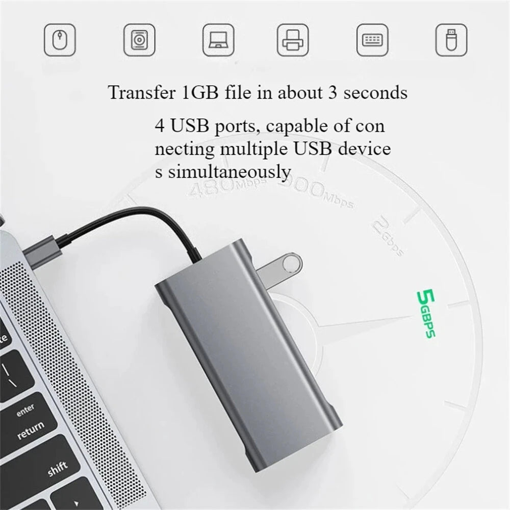 With 4 USB ports offering 5Gbps speed, transfer a 1GB file in just 3 seconds. Connect multiple USB devices simultaneously—no slowdowns, just efficiency.