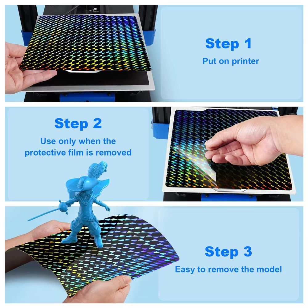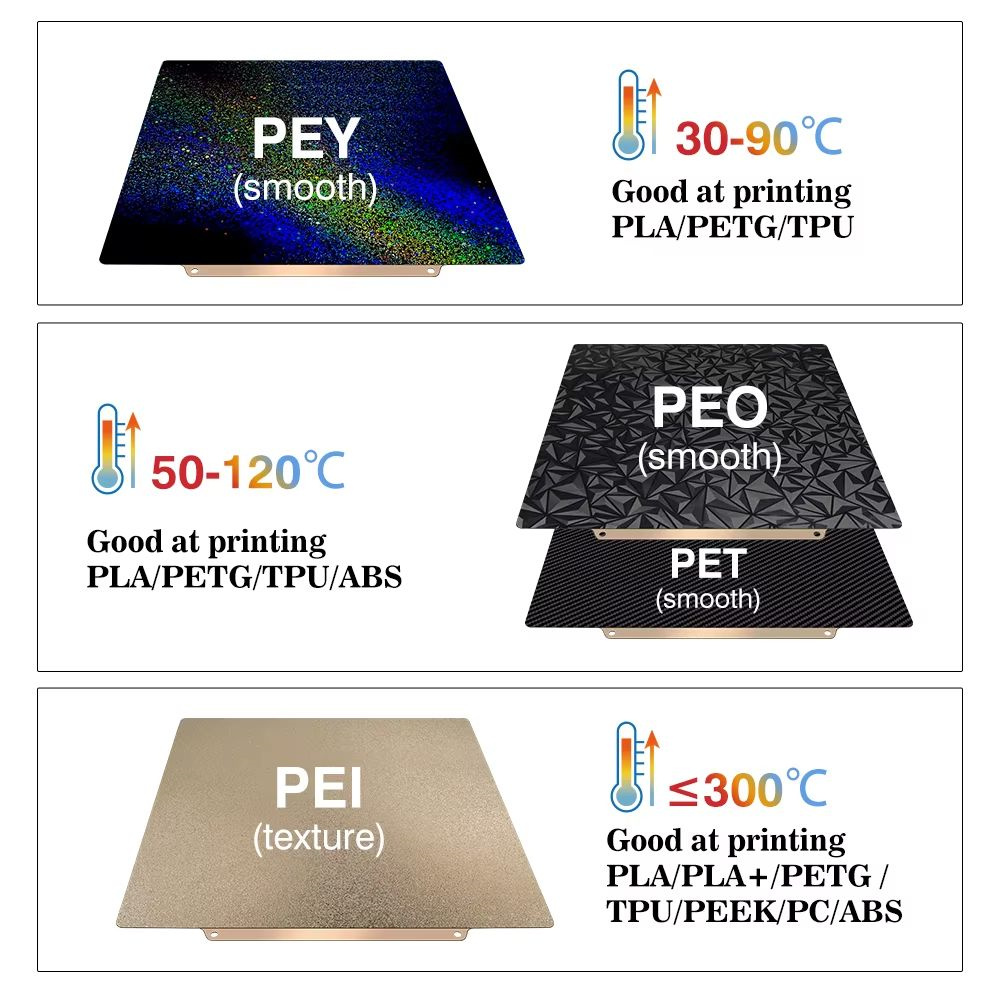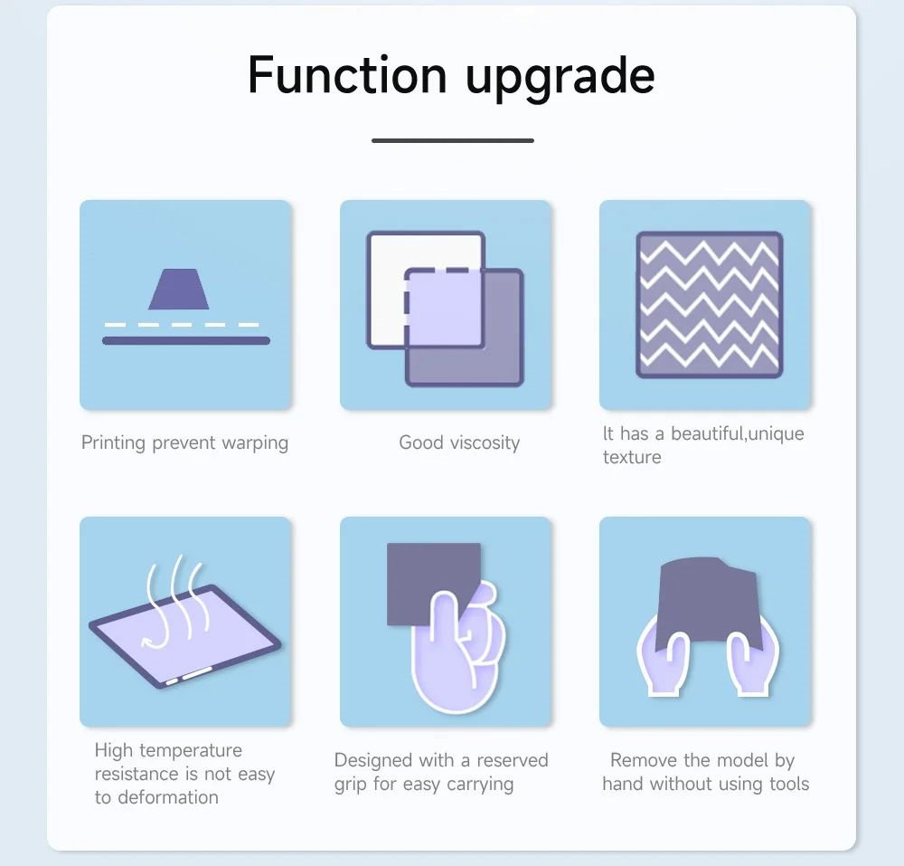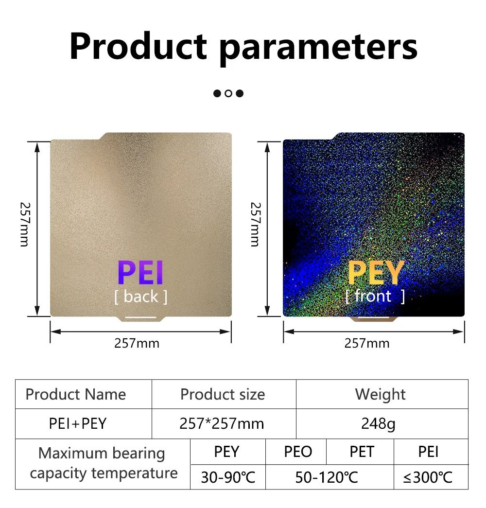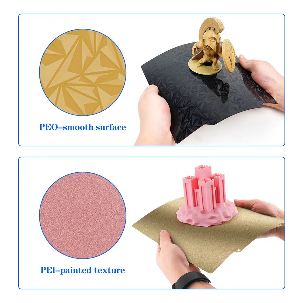 1. Dual-Sided Design: Textured PEI side for better adhesion and smooth PEY side for a sleek printing model finish.