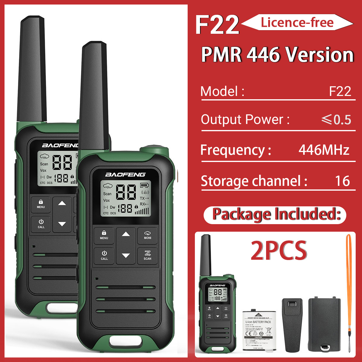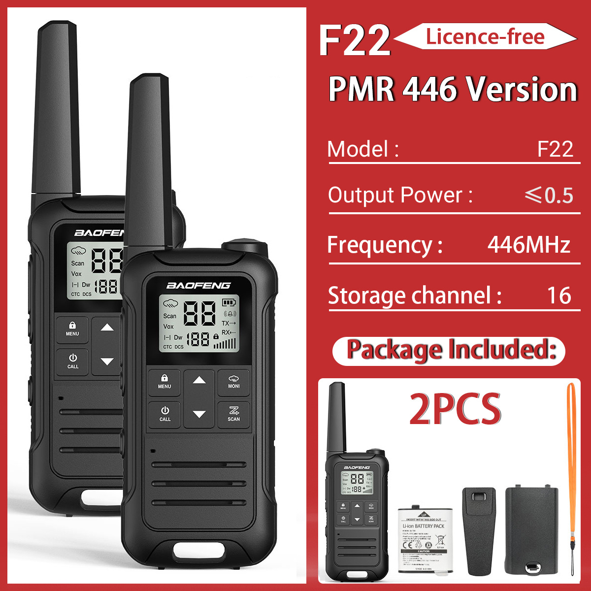 4.16 PMR (FRS) Channels with 155 Sub-Codes: Equipped with 16 PMR (FRS) channels and 155 sub-codes, the BF-T22 offers extensive communication options with minimized interference from other devices. The channel scan function further enhances this feature, allowing you to quickly find and switch to an active channel, enhancing your communication experience.