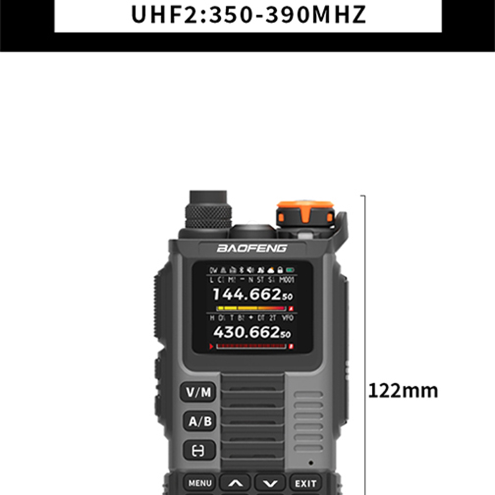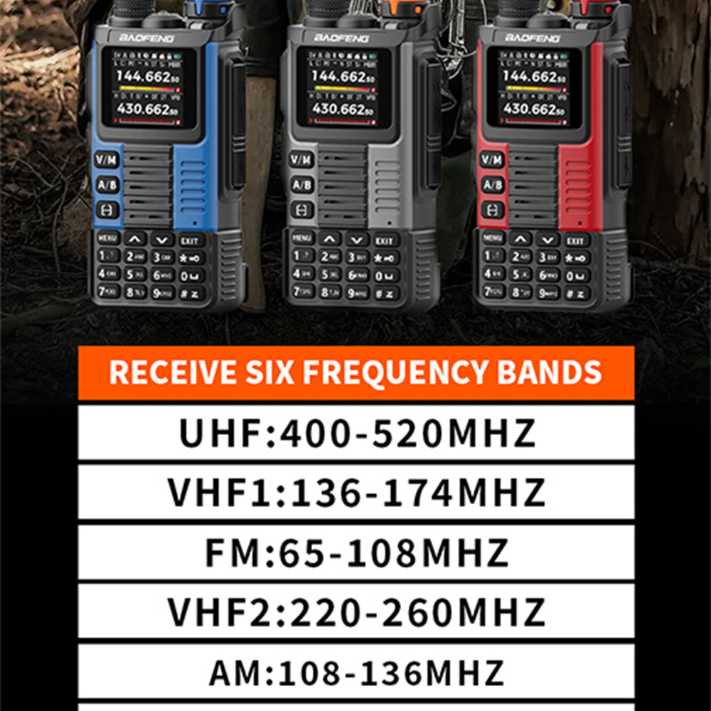 - Supported Receive Bands: Six bands (UHF: 400-520MHz, VHF1: 136-174MHz, FM: 65-108MHz, VHF2: 220-260MHz, AM: 108-136MHz, UHF2: 350-390MHz)
