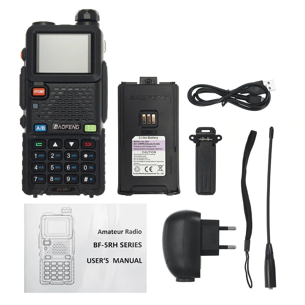1. Dual Band Capability: Our UV-5RH walkie-talkie operates on a dual band frequency of 136-174/400-520MHZ, effectively enhancing communication capabilities across varied environments.