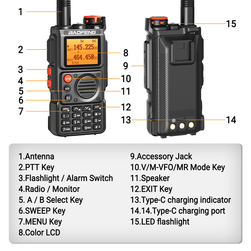 5. FM Transceiver: Enjoy entertainment with built-in FM radio receiving from 65 MHz to 108 MHz.