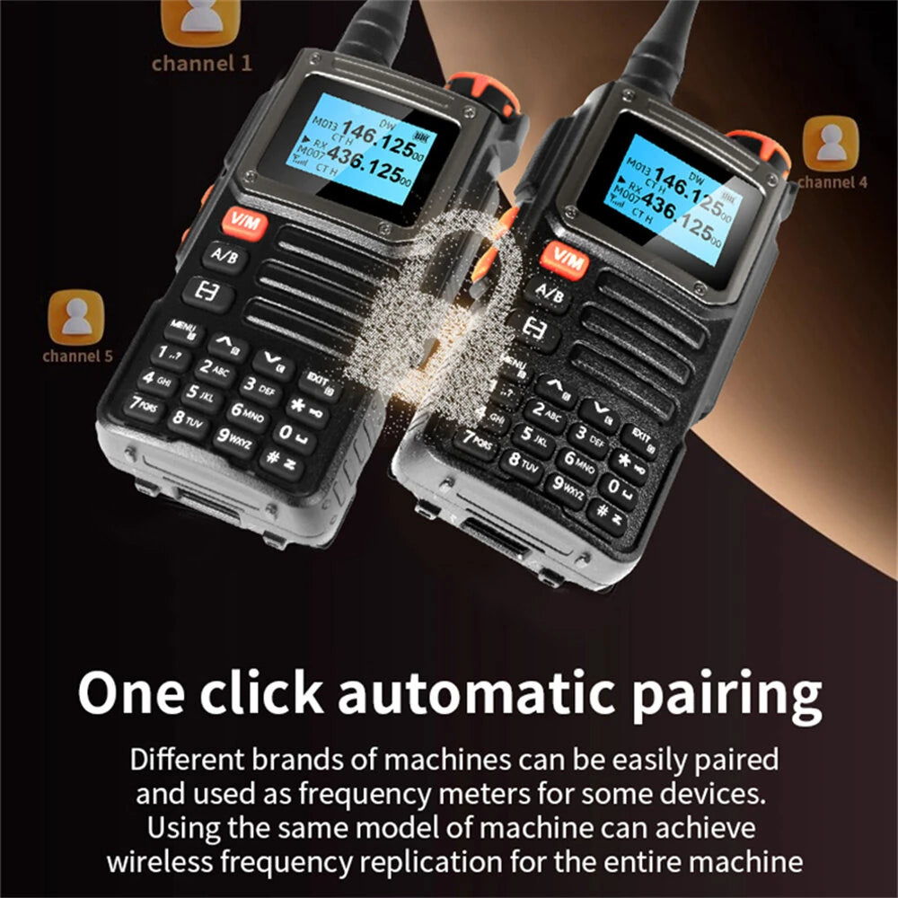 3.One-click Frequency Matching: Pair and synchronize your device quickly with the convenient single-button frequency matching. This feature allows different brands of transceivers to be inter