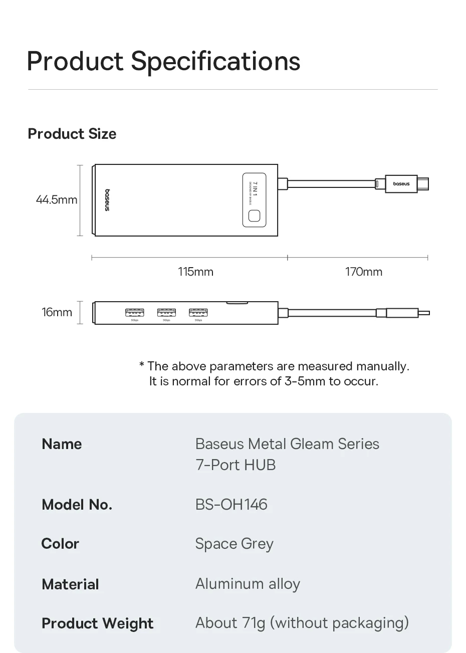 1x Baseus BS-OH146 7-in-1 Type-C Docking Station